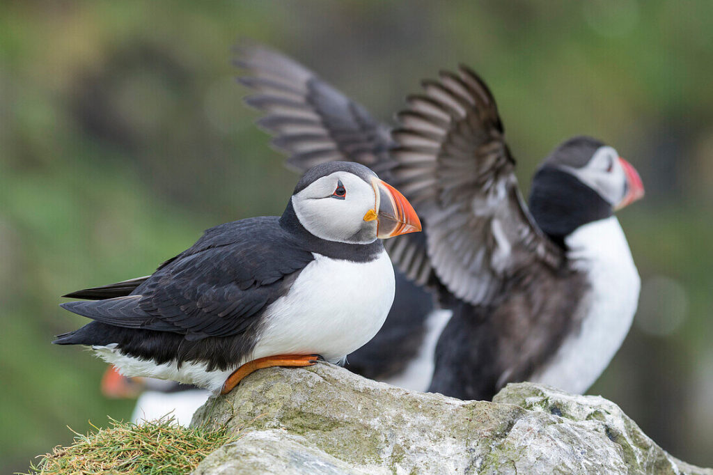 - Ngắm chim puffin, hay còn gọi là “chim hải âu cổ rụt” (Fratercula arctica), là một trong những loài chim đặc trưng của đảo với bộ lông đen trắng nổi bật và chiếc mỏ màu sắc rực rỡ. Thời gian này là lúc chúng quay lại Mykines để làm tổ.