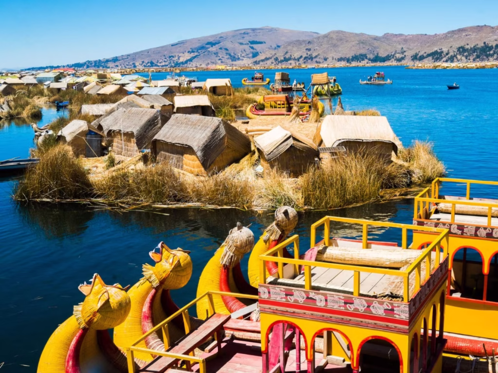 - Quý khách lên thuyền du ngoạn hồ, ghé thăm các đảo nổi Uros – được làm hoàn toàn từ cỏ lau Totora.