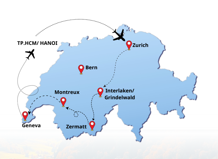 - Tiền bồi dưỡng cho hướng dẫn viên và tài xế địa phương: 90 Swiss France/khách/ tour.